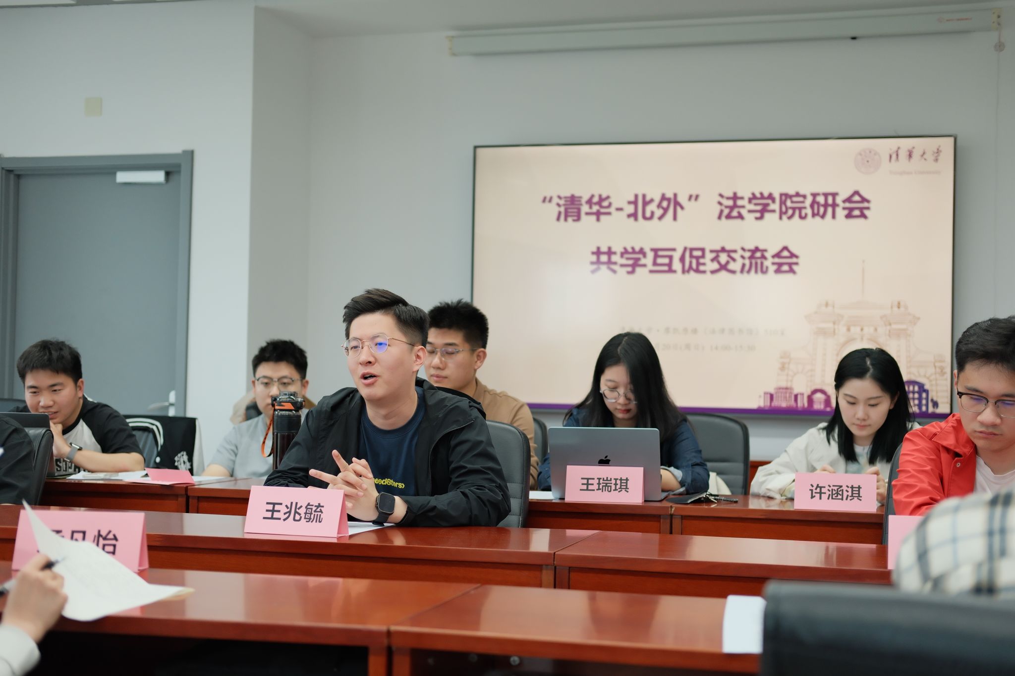 2025年4月20日,清华大学法学院研究生会(以下简称“清华法学院研会”)与北京外国语大学法学院研究生会(以下简称“我院研会”)共学互促交流会于清华大学法学院法律图书馆顺利举行。活动旨在加强两校法学研究生群体的友好往来与学术互动,协同推进研究生会工作的创新与发展。两院研会主席团成员、部门负责人、骨干等20余人参与了此次活动。