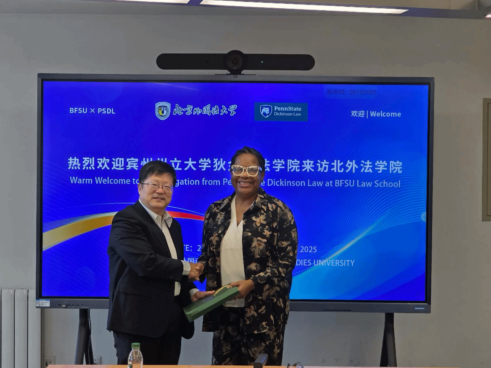 在随后举行的座谈会上,北外法学院与宾州州立大学狄金森法学院交流团围绕合作成果回顾与学生交流项目深化展开深入交流。会议由丁相顺院长主持,与会嘉宾就双方合作的现实成效与未来发展路径进行了多角度探讨。