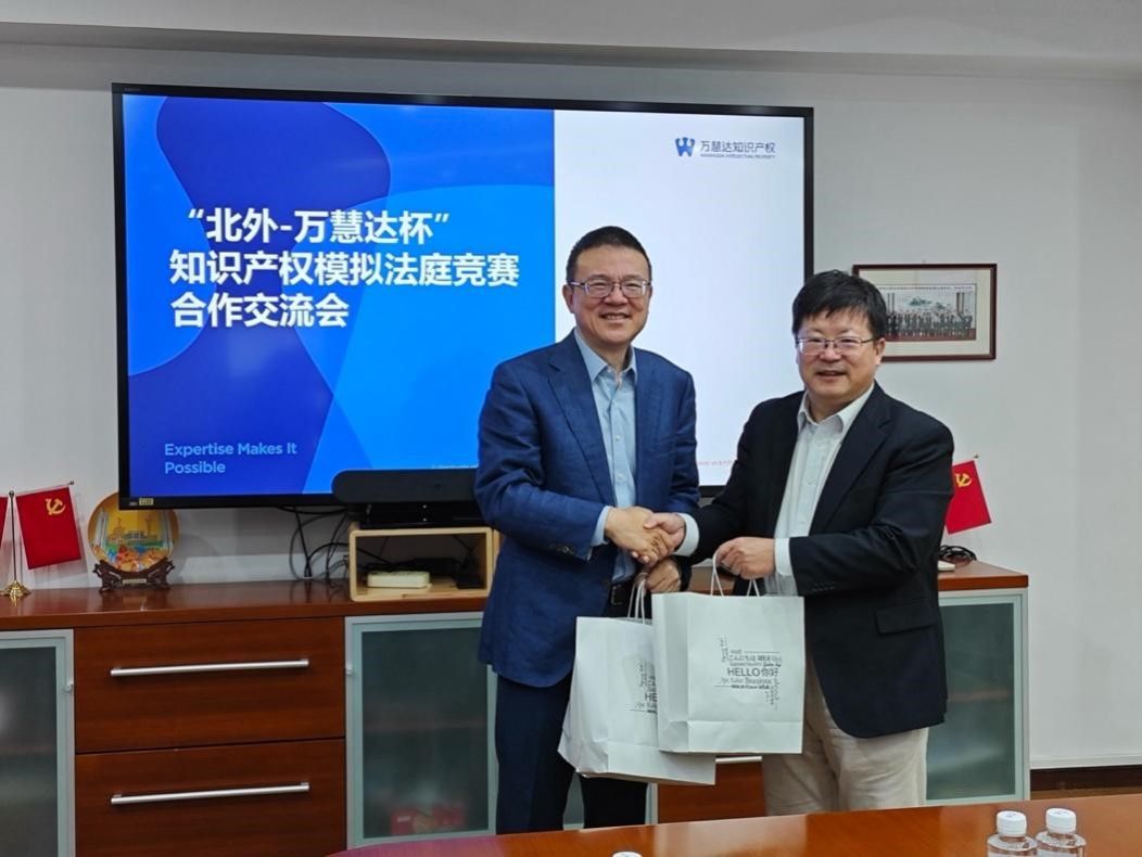 座谈会上,丁相顺院长对万慧达多年来对赛事活动的大力支持表示衷心感谢,并对学院近期将开展的主要工作和学术交流活动进行了介绍。黄晖对北外法学院一行来访表示热烈欢迎,并回顾了双方自 2007 年至今共同开展的十七届“北外-万慧达杯”知识产权模拟法庭竞赛活动概况。随后,双方围绕北外法学院涉外法治人才培养,在校学生实习实践,行业学术会议活动合作等内容展开了深入探讨和交流,并对2026 年在北外举办法科教育25周年、法学院成立20 周年之际,继续合作举办第十八届“北外-万慧达杯”知识产权模拟法庭竞赛活动达成共识,并就赛会举办的具体事项进行了商谈。