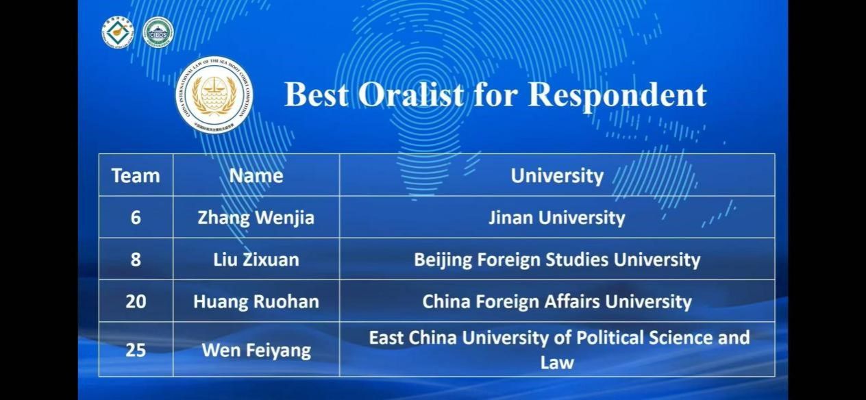 今年我校海洋法模拟法庭代表队由法学院2023级本科生伍浩铭、刘紫萱、傅一诺、陈牧,英语学院联培2023级本科生黄乐祺、陈炫其组成,由伍浩铭同学担任队长。本届赛事从4月底开始,吸引了来自全国高校的44支队伍参赛。经过前期书状选拔,共有16支队伍进入口辩环节,包括中国政法大学、上海交通大学、华东政法大学、山东大学等。