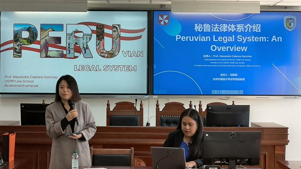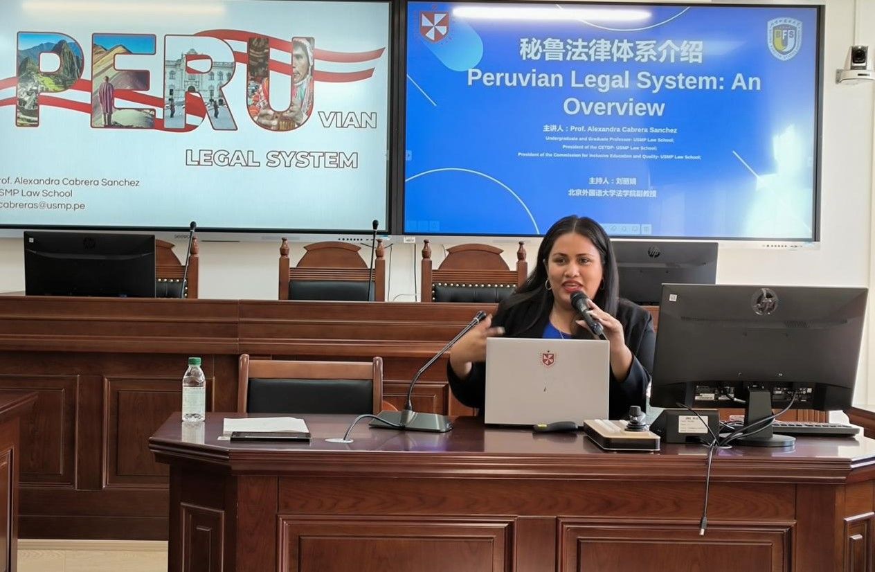 讲座尾声,刘丽娟副教授进行总结。她表示,Sánchez教授的讲解不仅使师生深入了解秘鲁法律体系的结构逻辑,也为中秘两国在比较法、宪政研究及法律教育合作 领域提供了宝贵启示。本次讲座是北外法学院推动国际法学交流与跨文化法律教育的又一重要举措。法学院将继续邀请来自世界各地的知名学者来访,搭建合作交流平台,促进区域国别法律研究水平,提升法学院的国际化能力,培养更多的优秀涉外法治人才。