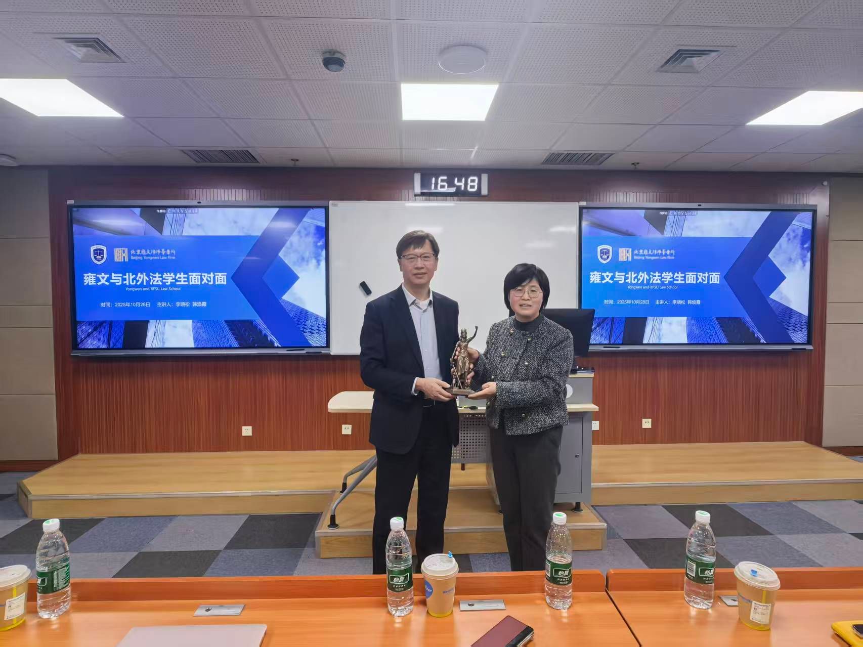 活动最后,李晓松主任代表雍文律师事务所向法学院赠送了象征司法公平公正的正义女神忒弥斯雕像,底座上刻有古罗马法谚:为实现正义,哪怕天崩地裂。