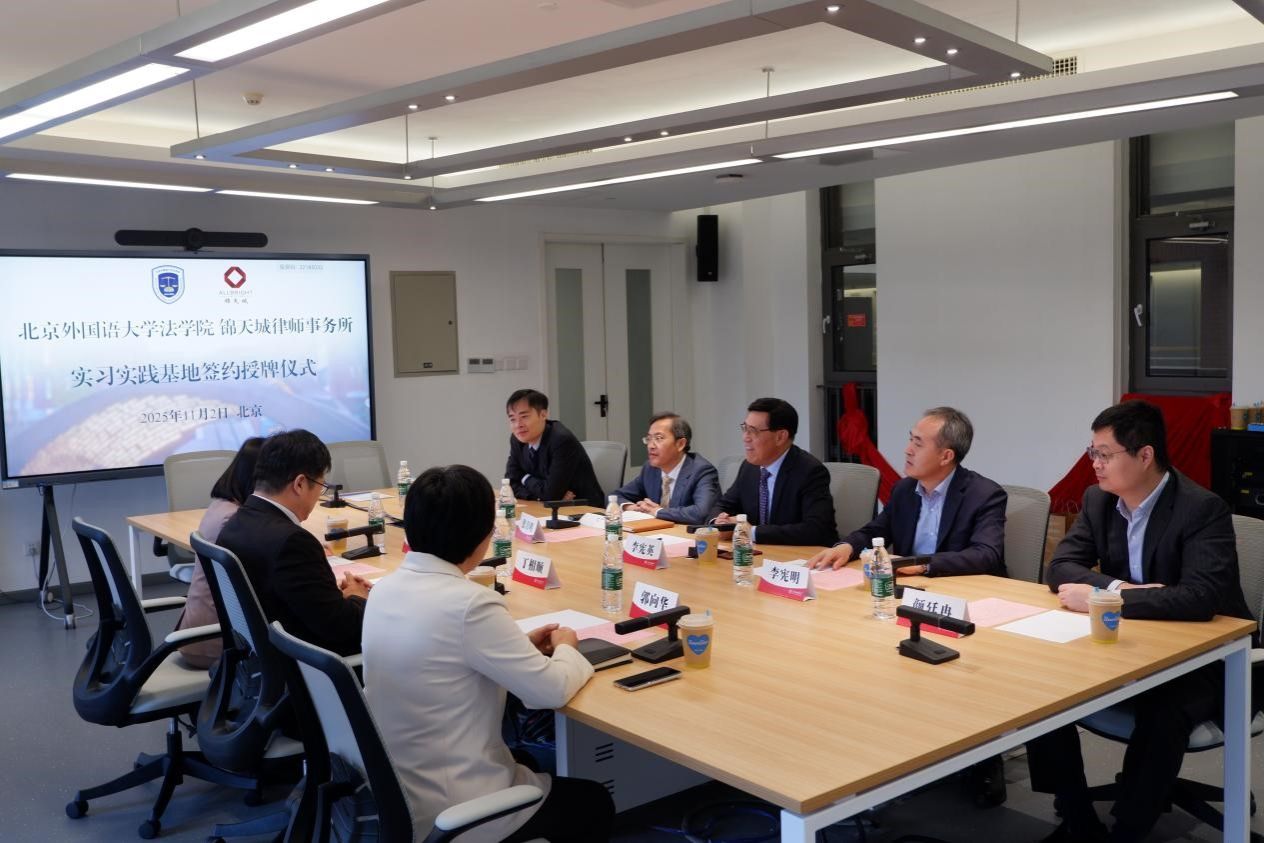 丁相顺院长对锦天城律师事务所一行的到访表示热烈欢迎。他谈到,北外法学院致力于培养“语言+法律”复合型涉外法治人才,学生在掌握扎实中国法基础的同时,兼具多语种优势,能够更好地适应涉外法律实务需求。他表示,与锦天城这样的全国领先律所建立合作,将有力推动学生实习实践与就业对接,实现人才培养与行业需求的有效衔接。