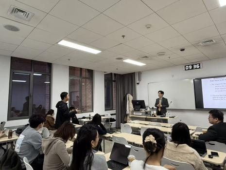 讲座尾声,同学们积极用英语、韩语向金教授提问,提问的范围涉及如何应对新旧法律制度之间存在的矛盾、数量激增与质量隐忧之间的矛盾、韩国SJD与JD等教育项目之间的区别、以及在“考公热”的现状下体制外的法律人才供给问题等。金教授一一认真作出解答,现场交流气氛热烈。讲座在丁相顺院长的简单总结和同学们的热烈掌声中结束。