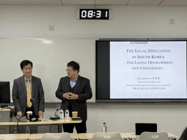 2025年11月5日上午,成均馆大学法学院金宰源教授受邀访问我院,并以“韩国法律教育的最新发展与挑战”为主题,结合历史、文化、制度等多维度分析,揭示了韩国法学教育从传统走向现代的转型之路。本次讲座由北京外国语大学法学院院长丁相顺教授主持。