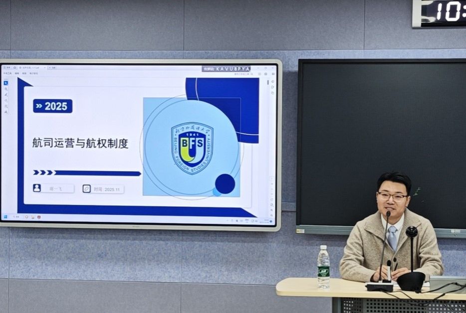 2025年11月18日,北外航空法治讲堂第八讲开讲,谢一飞先生作为主讲人,作了题为《航司运营与航权制度》的主题讲座。讲座由北京外国语大学法学院副院长、法学院教授董念清主持。