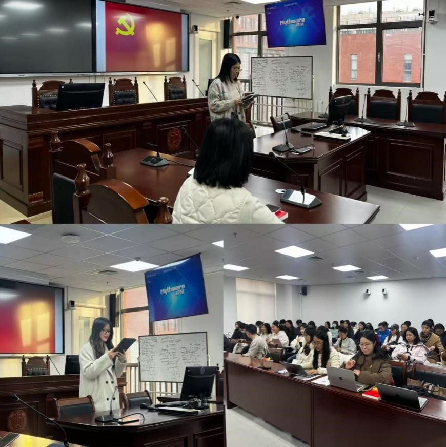 近日,法学院各学生党支部在国际大厦302、306教室与国内大厦703模拟法庭分别召开二十届四中全会专题党课学习会暨党员发展大会,会议由各支部书记主持。