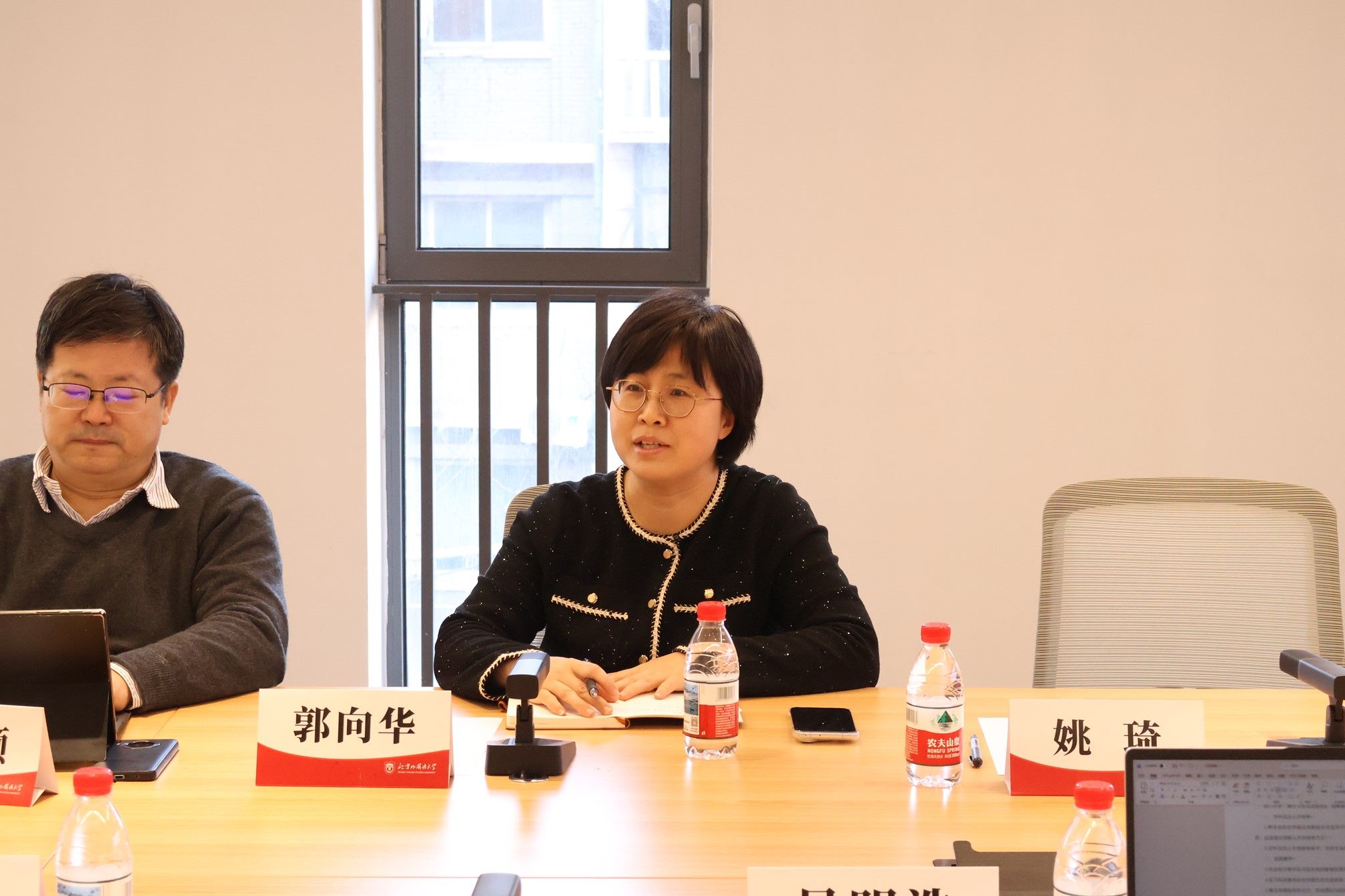 郭向华书记介绍了北外法学院的发展历程与特色。学院立足学校语言优势,构建“外语+法律”复合型人才培养模式,主办的刊物《北外法学》获评中国知网高影响力集刊,并依托多个校级、院级研究中心推动学科发展。