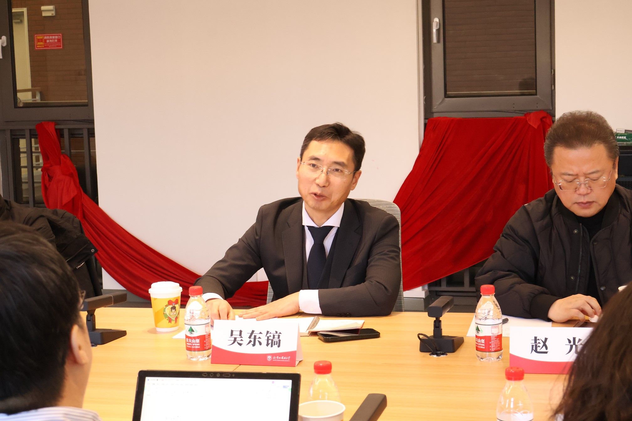 吴东镐院长对北外法学院的热情接待表示感谢,并介绍了延边大学法学院的发展历程、学科优势以及在东北亚区域法律研究、民族与边疆法治等领域取得的成果。他也坦诚分享了学院当前发展面临的机遇与挑战,表达了希望通过交流互鉴,推动学科内涵提升的意愿。