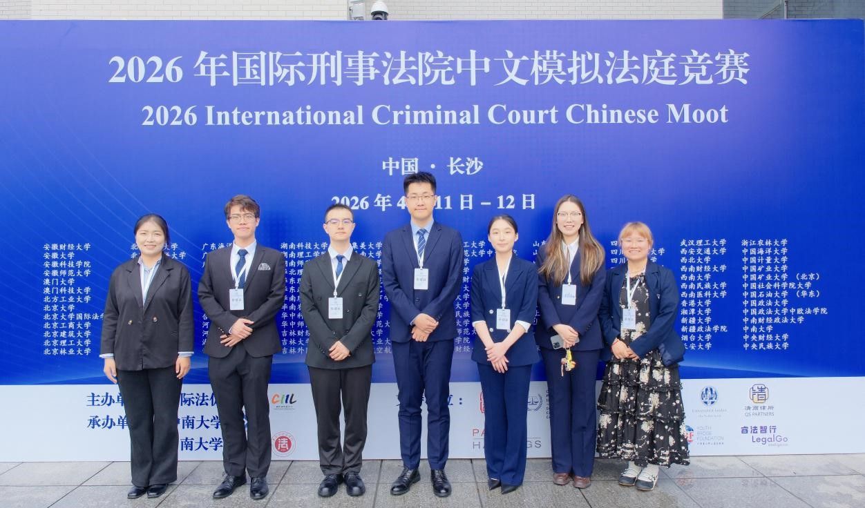 2026年4月10日至4月12日,2026年国际刑事法院中文模拟法庭比赛(以下简称“ICC中文赛”)在湖南省长沙市中南大学成功举行。我校代表队与来自中国政法大学、中国政法大学中欧法学院、北京大学国际法学院、吉林大学、南开大学、中南大学等高校的代表队展开激烈交锋。经过两天的激烈角逐,我校代表队从130支代表队中脱颖而出,取得比赛二等奖(第15名)的好成绩。