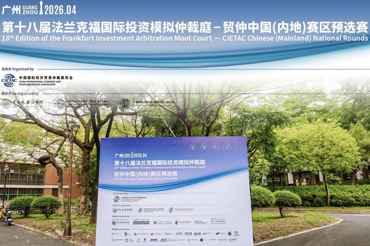 2026年4月8日至12日,由中国国际经济贸易仲裁委员会(以下简称“贸仲”)主办并由贸仲香港仲裁中心、贸仲华南分会和中山大学法学院承办的第十八届法兰克福国际投资模拟仲裁庭(Frankfurt Investment Arbitration Moot Court)在广东广州圆满落幕。